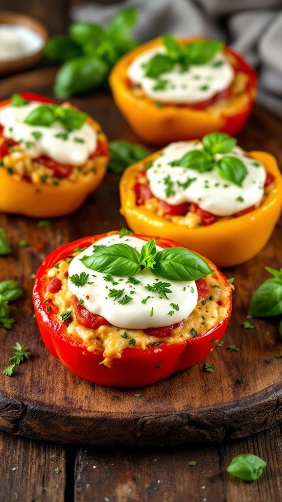 Inspired by the beloved Caprese salad, this dish takes all the best elements—ripe tomatoes, mozzarella, and basil—and stuffs them inside halved bell peppers along with seasoned chicken and a touch of balsamic glaze. After a quick bake, you get melty, flavorful stuffed peppers with a golden cheese topping and that signature Caprese brightness.